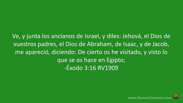 Ve, y junta los ancianos de Israel, y diles: Jehová, el Dios de vuestros padres, el Dios de Abraham, de Isaac, y de Jacob, me apareció, diciendo: De cierto os he visitado, y visto lo que se os hace en Egipto; -Éxodo 3:16 RV1909