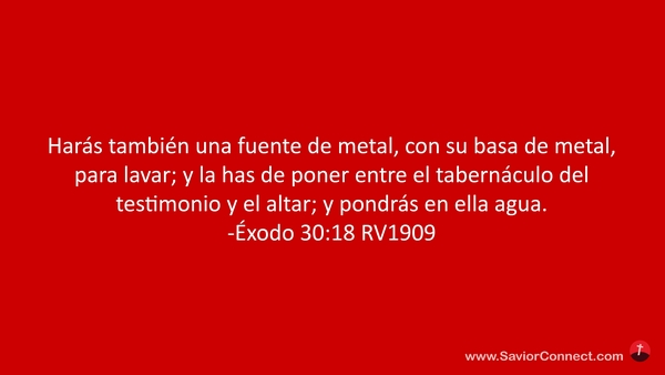 Harás también una fuente de metal, con su basa de metal, para lavar; y la has de poner entre el tabernáculo del testimonio y el altar; y pondrás en ella agua. -Éxodo 30:18 RV1909