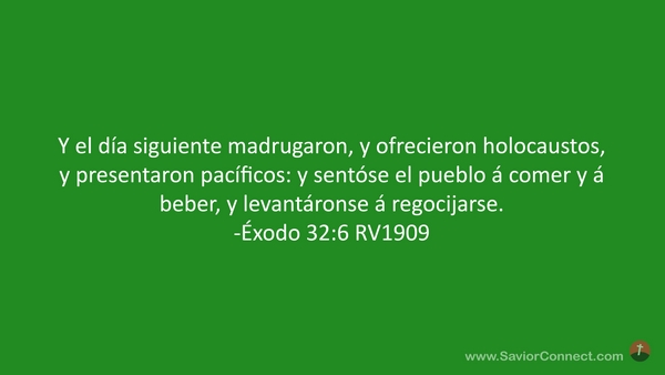 Y el día siguiente madrugaron, y ofrecieron holocaustos, y presentaron pacíficos: y sentóse el pueblo á comer y á beber, y levantáronse á regocijarse. -Éxodo 32:6 RV1909