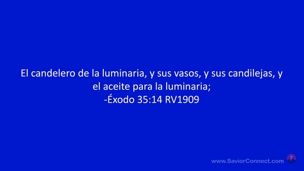 El candelero de la luminaria, y sus vasos, y sus candilejas, y el aceite para la luminaria; -Éxodo 35:14 RV1909