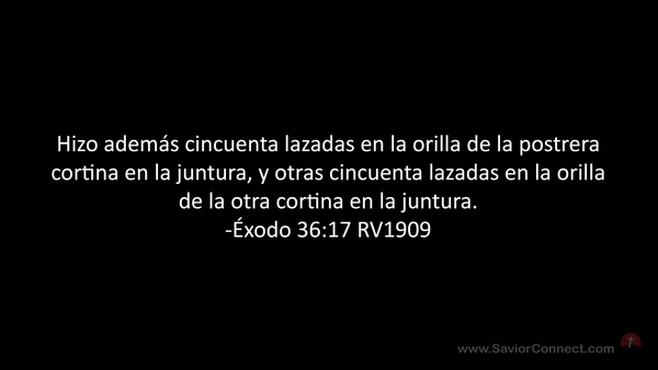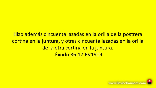 Hizo además cincuenta lazadas en la orilla de la postrera cortina en la juntura, y otras cincuenta lazadas en la orilla de la otra cortina en la juntura. -Éxodo 36:17 RV1909