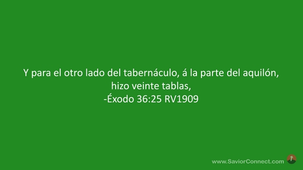 Y para el otro lado del tabernáculo, á la parte del aquilón, hizo veinte tablas, -Éxodo 36:25 RV1909