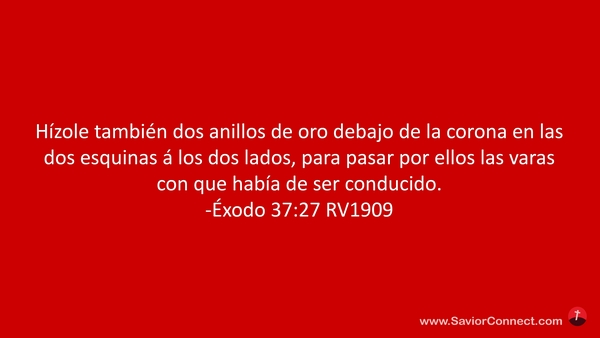 Hízole también dos anillos de oro debajo de la corona en las dos esquinas á los dos lados, para pasar por ellos las varas con que había de ser conducido. -Éxodo 37:27 RV1909