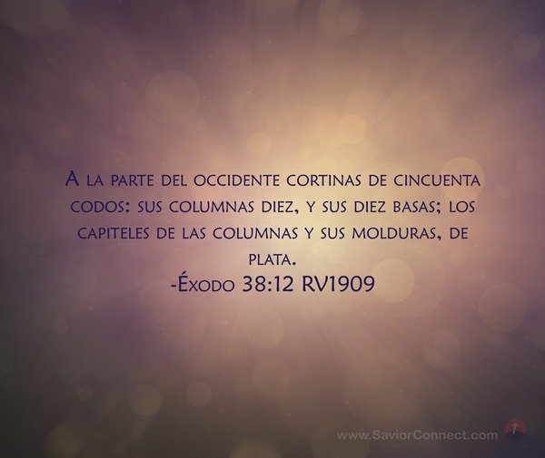 A la parte del occidente cortinas de cincuenta codos: sus columnas diez, y sus diez basas; los capiteles de las columnas y sus molduras, de plata. -Éxodo 38:12 RV1909