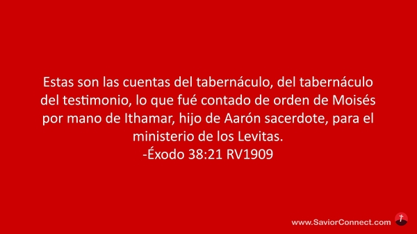 Estas son las cuentas del tabernáculo, del tabernáculo del testimonio, lo que fué contado de orden de Moisés por mano de Ithamar, hijo de Aarón sacerdote, para el ministerio de los Levitas. -Éxodo 38:21 RV1909