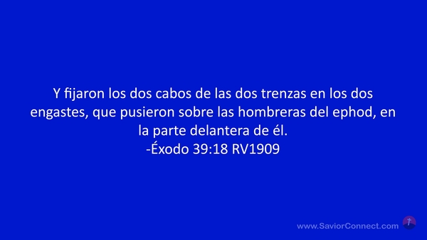 Y fijaron los dos cabos de las dos trenzas en los dos engastes, que pusieron sobre las hombreras del ephod, en la parte delantera de él. -Éxodo 39:18 RV1909