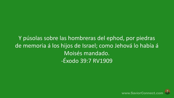 Y púsolas sobre las hombreras del ephod, por piedras de memoria á los hijos de Israel; como Jehová lo había á Moisés mandado. -Éxodo 39:7 RV1909