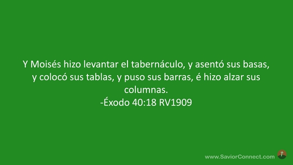 Y Moisés hizo levantar el tabernáculo, y asentó sus basas, y colocó sus tablas, y puso sus barras, é hizo alzar sus columnas. -Éxodo 40:18 RV1909