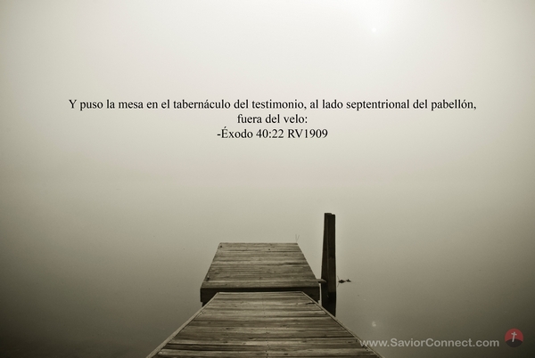 Y puso la mesa en el tabernáculo del testimonio, al lado septentrional del pabellón, fuera del velo: -Éxodo 40:22 RV1909