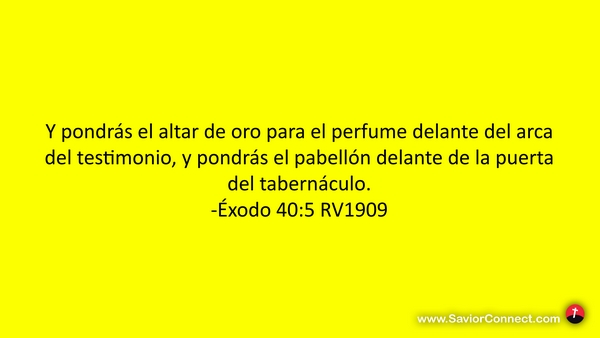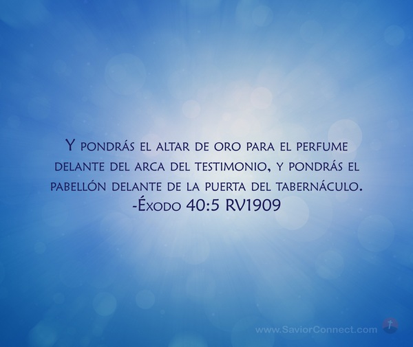 Y pondrás el altar de oro para el perfume delante del arca del testimonio, y pondrás el pabellón delante de la puerta del tabernáculo. -Éxodo 40:5 RV1909