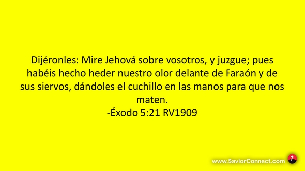 Dijéronles: Mire Jehová sobre vosotros, y juzgue; pues habéis hecho heder nuestro olor delante de Faraón y de sus siervos, dándoles el cuchillo en las manos para que nos maten. -Éxodo 5:21 RV1909