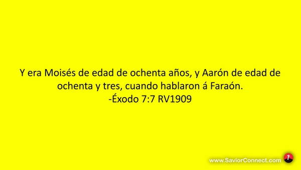 Y era Moisés de edad de ochenta años, y Aarón de edad de ochenta y tres, cuando hablaron á Faraón. -Éxodo 7:7 RV1909