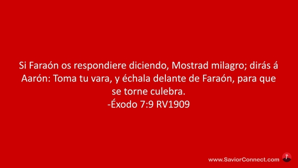 Si Faraón os respondiere diciendo, Mostrad milagro; dirás á Aarón: Toma tu vara, y échala delante de Faraón, para que se torne culebra. -Éxodo 7:9 RV1909