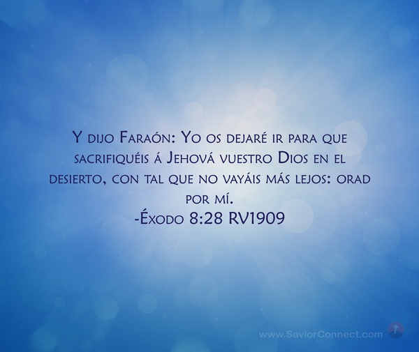 Y dijo Faraón: Yo os dejaré ir para que sacrifiquéis á Jehová vuestro Dios en el desierto, con tal que no vayáis más lejos: orad por mí. -Éxodo 8:28 RV1909