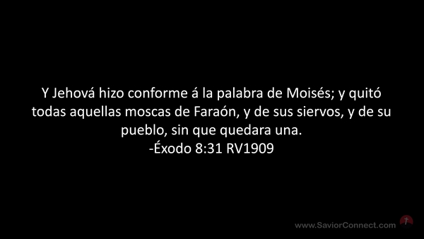Y Jehová hizo conforme á la palabra de Moisés; y quitó todas aquellas moscas de Faraón, y de sus siervos, y de su pueblo, sin que quedara una. -Éxodo 8:31 RV1909