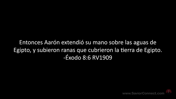 Entonces Aarón extendió su mano sobre las aguas de Egipto, y subieron ranas que cubrieron la tierra de Egipto. -Éxodo 8:6 RV1909
