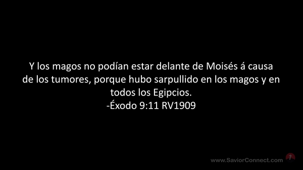 Y los magos no podían estar delante de Moisés á causa de los tumores, porque hubo sarpullido en los magos y en todos los Egipcios. -Éxodo 9:11 RV1909