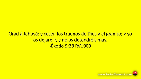 Orad á Jehová: y cesen los truenos de Dios y el granizo; y yo os dejaré ir, y no os detendréis más. -Éxodo 9:28 RV1909