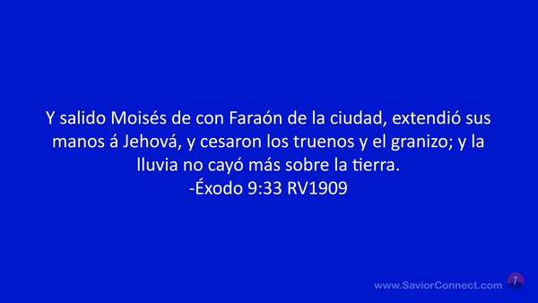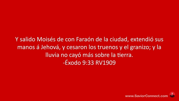 Y salido Moisés de con Faraón de la ciudad, extendió sus manos á Jehová, y cesaron los truenos y el granizo; y la lluvia no cayó más sobre la tierra. -Éxodo 9:33 RV1909