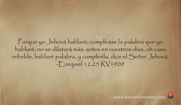 Porque yo Jehová hablaré; cumpliráse la palabra que yo hablaré; no se dilatará más: antes en vuestros días, oh casa rebelde, hablaré palabra, y cumpliréla, dice el Señor Jehová. -Ezequiel 12:25 RV1909