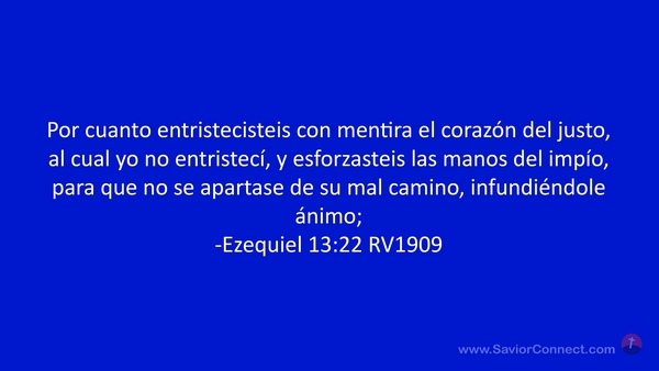 Por cuanto entristecisteis con mentira el corazón del justo, al cual yo no entristecí, y esforzasteis las manos del impío, para que no se apartase de su mal camino, infundiéndole ánimo; -Ezequiel 13:22 RV1909