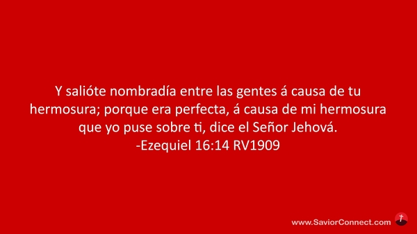 Y salióte nombradía entre las gentes á causa de tu hermosura; porque era perfecta, á causa de mi hermosura que yo puse sobre ti, dice el Señor Jehová. -Ezequiel 16:14 RV1909