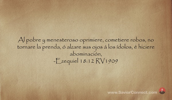 Al pobre y menesteroso oprimiere, cometiere robos, no tornare la prenda, ó alzare sus ojos á los ídolos, é hiciere abominación, -Ezequiel 18:12 RV1909