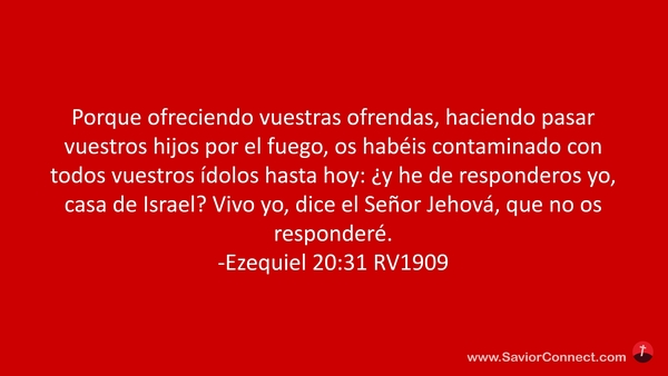 Porque ofreciendo vuestras ofrendas, haciendo pasar vuestros hijos por el fuego, os habéis contaminado con todos vuestros ídolos hasta hoy: ¿y he de responderos yo, casa de Israel? Vivo yo, dice el Señor Jehová, que no os responderé. -Ezequiel 20:31 RV1909