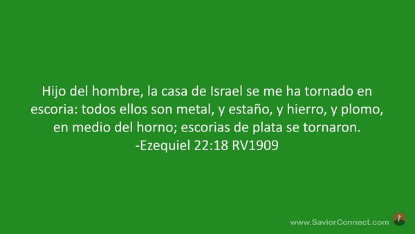 Hijo del hombre, la casa de Israel se me ha tornado en escoria: todos ellos son metal, y estaño, y hierro, y plomo, en medio del horno; escorias de plata se tornaron. -Ezequiel 22:18 RV1909