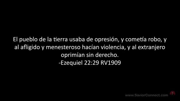 El pueblo de la tierra usaba de opresión, y cometía robo, y al afligido y menesteroso hacían violencia, y al extranjero oprimían sin derecho. -Ezequiel 22:29 RV1909