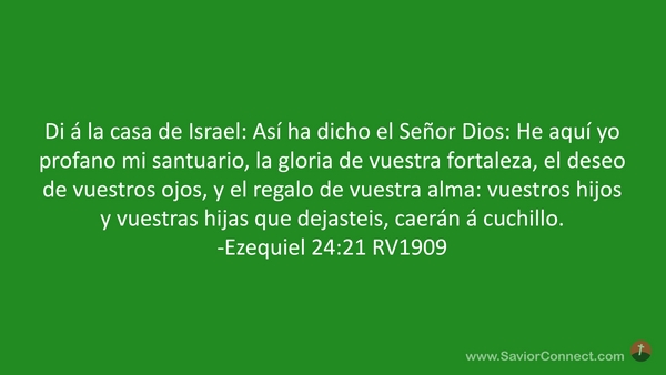 Di á la casa de Israel: Así ha dicho el Señor Dios: He aquí yo profano mi santuario, la gloria de vuestra fortaleza, el deseo de vuestros ojos, y el regalo de vuestra alma: vuestros hijos y vuestras hijas que dejasteis, caerán á cuchillo. -Ezequiel 24:21 RV1909