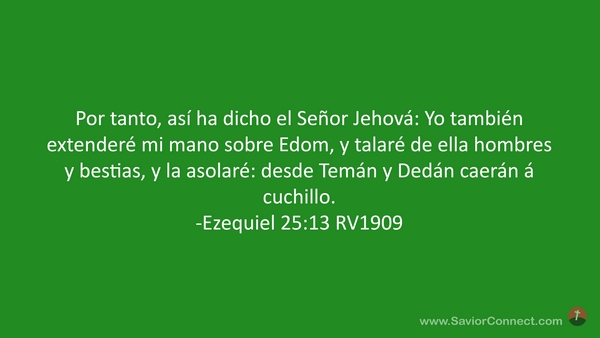 Por tanto, así ha dicho el Señor Jehová: Yo también extenderé mi mano sobre Edom, y talaré de ella hombres y bestias, y la asolaré: desde Temán y Dedán caerán á cuchillo. -Ezequiel 25:13 RV1909