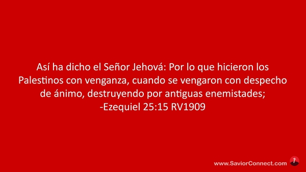 Así ha dicho el Señor Jehová: Por lo que hicieron los Palestinos con venganza, cuando se vengaron con despecho de ánimo, destruyendo por antiguas enemistades; -Ezequiel 25:15 RV1909