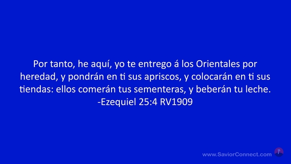 Por tanto, he aquí, yo te entrego á los Orientales por heredad, y pondrán en ti sus apriscos, y colocarán en ti sus tiendas: ellos comerán tus sementeras, y beberán tu leche. -Ezequiel 25:4 RV1909