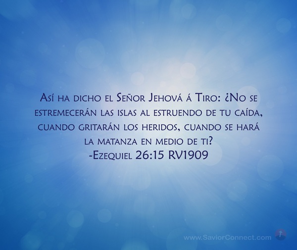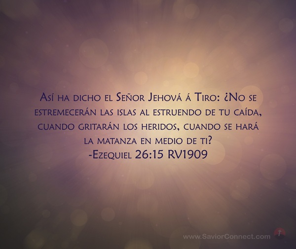 Así ha dicho el Señor Jehová á Tiro: ¿No se estremecerán las islas al estruendo de tu caída, cuando gritarán los heridos, cuando se hará la matanza en medio de ti? -Ezequiel 26:15 RV1909