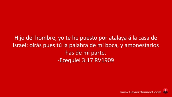Hijo del hombre, yo te he puesto por atalaya á la casa de Israel: oirás pues tú la palabra de mi boca, y amonestarlos has de mi parte. -Ezequiel 3:17 RV1909