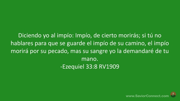 Diciendo yo al impío: Impío, de cierto morirás; si tú no hablares para que se guarde el impío de su camino, el impío morirá por su pecado, mas su sangre yo la demandaré de tu mano. -Ezequiel 33:8 RV1909