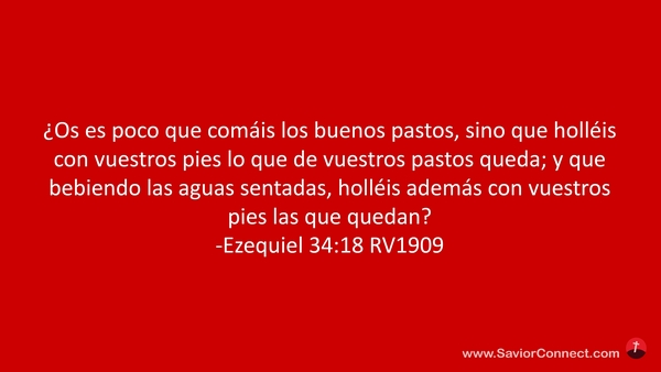 ¿Os es poco que comáis los buenos pastos, sino que holléis con vuestros pies lo que de vuestros pastos queda; y que bebiendo las aguas sentadas, holléis además con vuestros pies las que quedan? -Ezequiel 34:18 RV1909