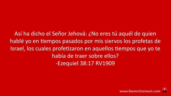 Así ha dicho el Señor Jehová: ¿No eres tú aquél de quien hablé yo en tiempos pasados por mis siervos los profetas de Israel, los cuales profetizaron en aquellos tiempos que yo te había de traer sobre ellos? -Ezequiel 38:17 RV1909