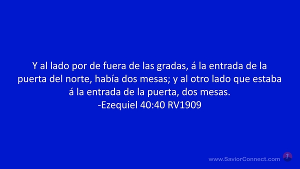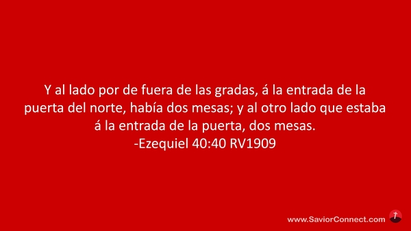 Y al lado por de fuera de las gradas, á la entrada de la puerta del norte, había dos mesas; y al otro lado que estaba á la entrada de la puerta, dos mesas. -Ezequiel 40:40 RV1909
