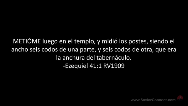 METIÓME luego en el templo, y midió los postes, siendo el ancho seis codos de una parte, y seis codos de otra, que era la anchura del tabernáculo. -Ezequiel 41:1 RV1909