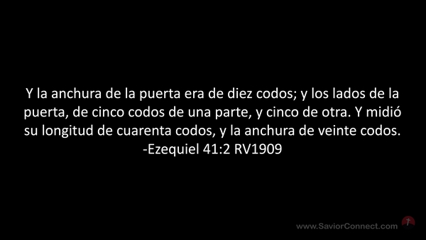 Y la anchura de la puerta era de diez codos; y los lados de la puerta, de cinco codos de una parte, y cinco de otra. Y midió su longitud de cuarenta codos, y la anchura de veinte codos. -Ezequiel 41:2 RV1909
