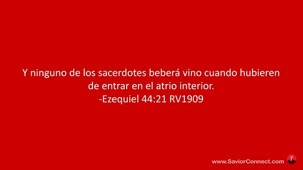 Y ninguno de los sacerdotes beberá vino cuando hubieren de entrar en el atrio interior. -Ezequiel 44:21 RV1909