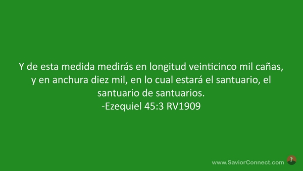 Y de esta medida medirás en longitud veinticinco mil cañas, y en anchura diez mil, en lo cual estará el santuario, el santuario de santuarios. -Ezequiel 45:3 RV1909