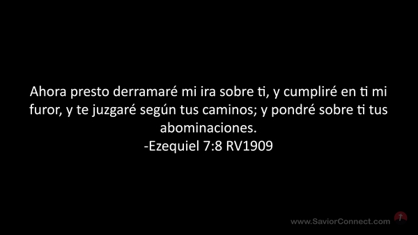 Ahora presto derramaré mi ira sobre ti, y cumpliré en ti mi furor, y te juzgaré según tus caminos; y pondré sobre ti tus abominaciones. -Ezequiel 7:8 RV1909