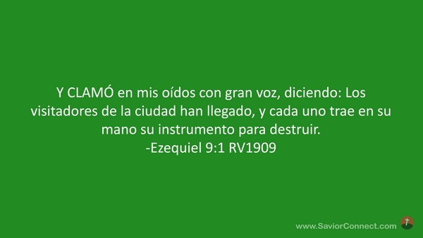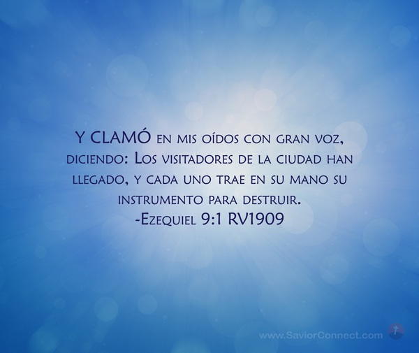 Y CLAMÓ en mis oídos con gran voz, diciendo: Los visitadores de la ciudad han llegado, y cada uno trae en su mano su instrumento para destruir. -Ezequiel 9:1 RV1909
