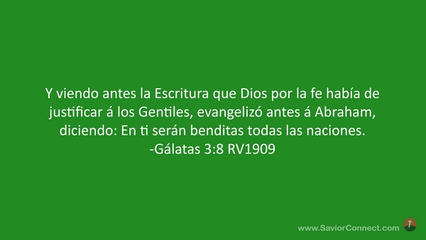 Y viendo antes la Escritura que Dios por la fe había de justificar á los Gentiles, evangelizó antes á Abraham, diciendo: En ti serán benditas todas las naciones. -Gálatas 3:8 RV1909