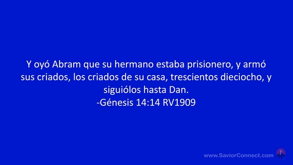Y oyó Abram que su hermano estaba prisionero, y armó sus criados, los criados de su casa, trescientos dieciocho, y siguiólos hasta Dan. -Génesis 14:14 RV1909