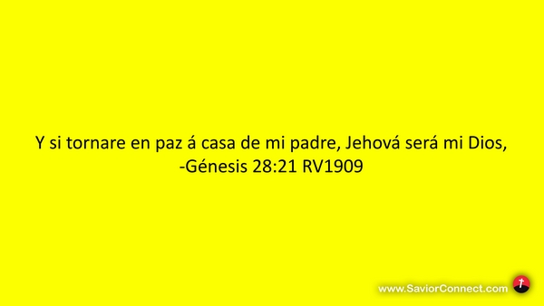 Y si tornare en paz á casa de mi padre, Jehová será mi Dios, -Génesis 28:21 RV1909