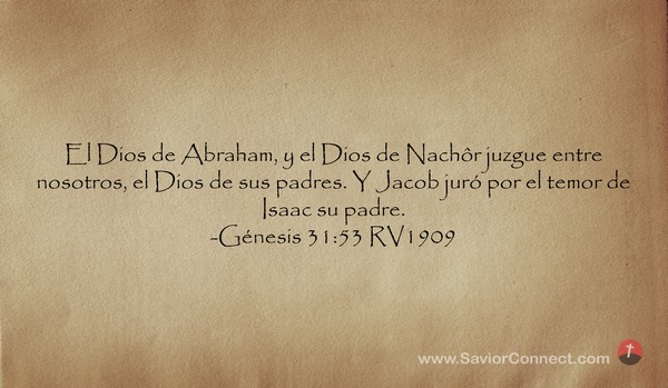 El Dios de Abraham, y el Dios de Nachôr juzgue entre nosotros, el Dios de sus padres. Y Jacob juró por el temor de Isaac su padre. -Génesis 31:53 RV1909